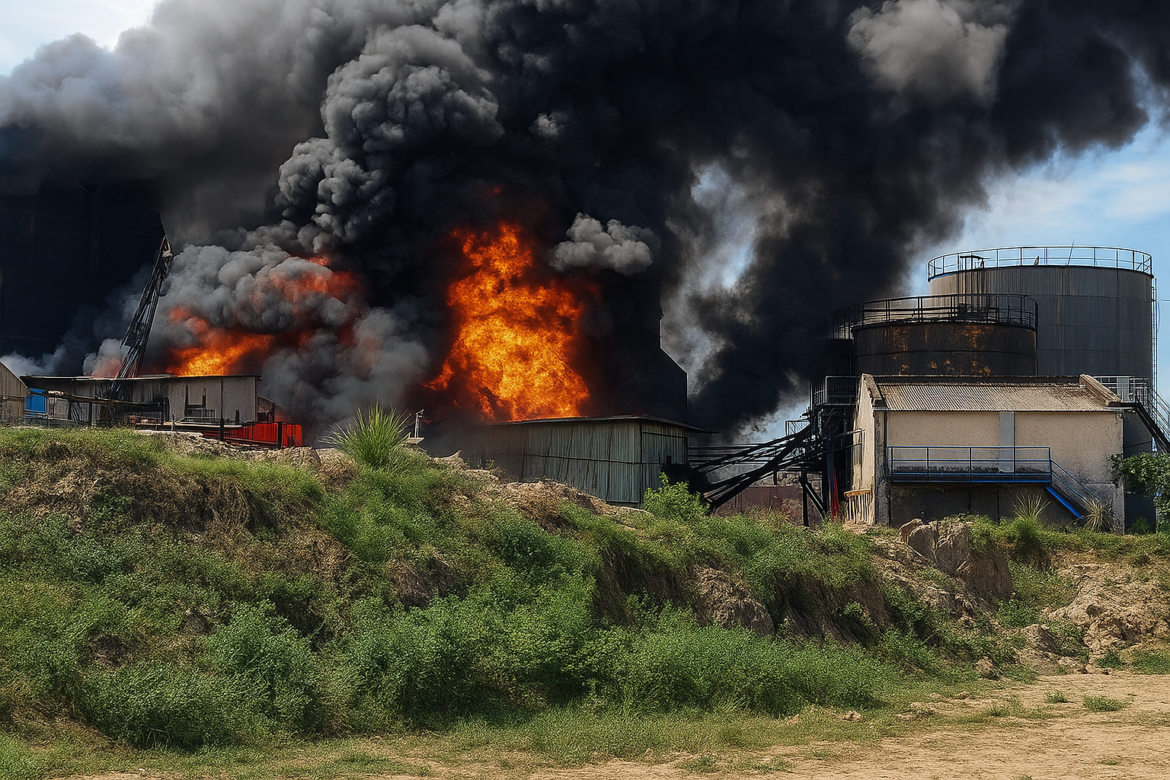 Panic struck the Dehat industrial area early Tuesday morning when a sudden fire broke out in a local manufacturing factory. Thick black smoke was seen billowing into the sky as workers rushed out of the premises. Eyewitnesses reported that the fire spread rapidly through stored materials, forcing an immediate evacuation of nearby units.