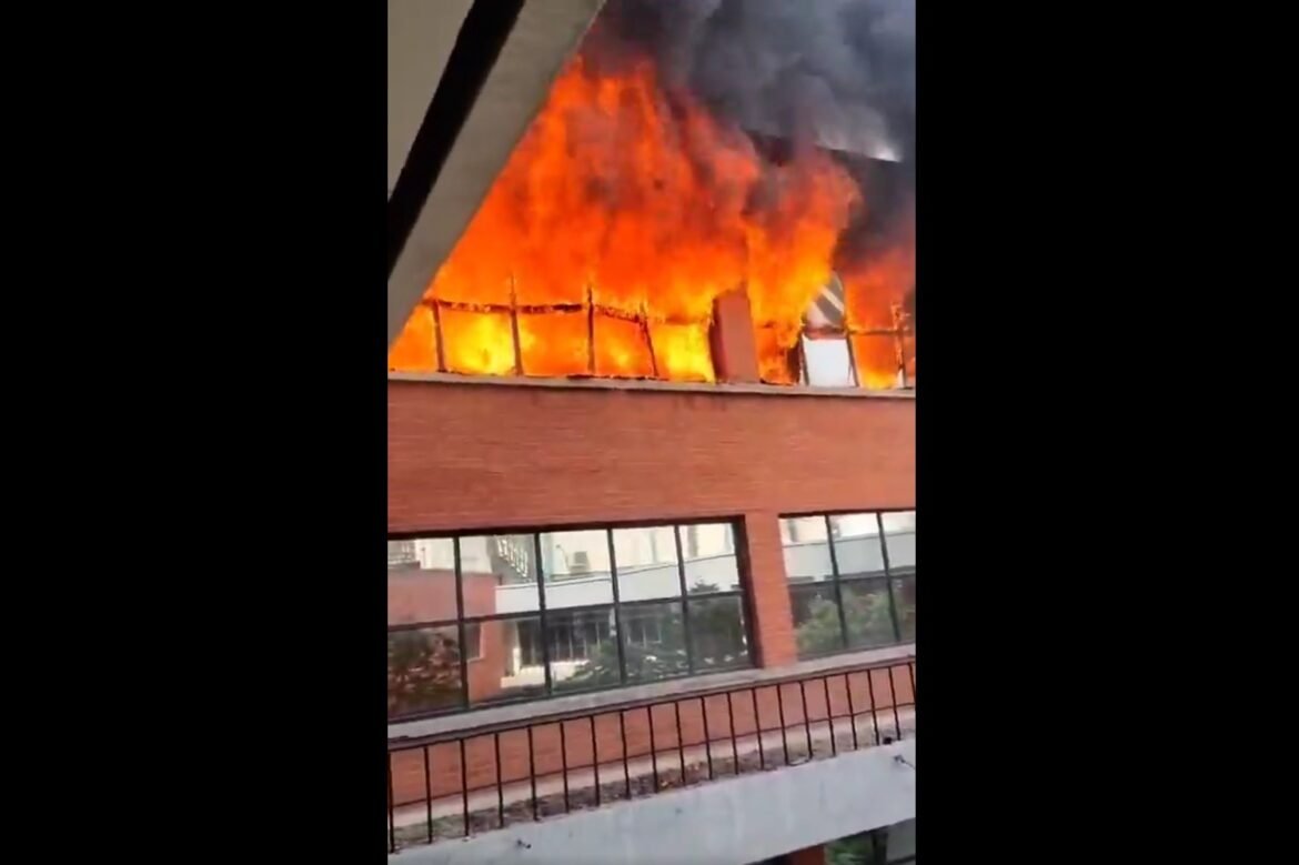 Visuals from the spot show huge flames blowing out of the windows of the college and a cloud of black smoke erupting from the flames.