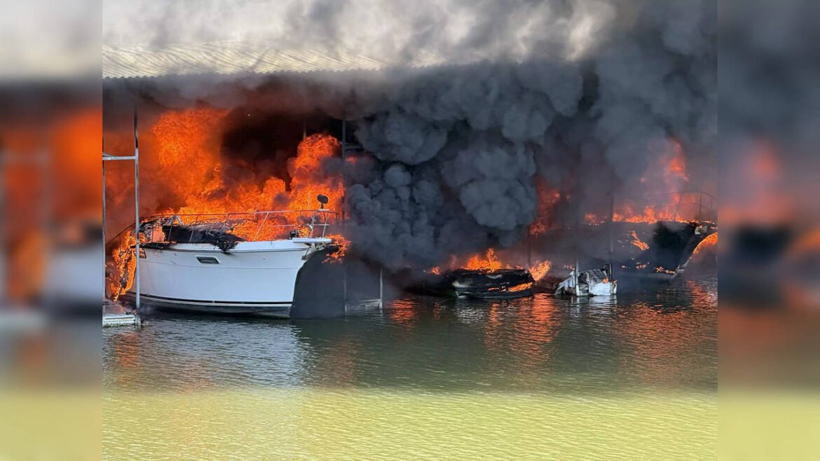 A massive fire broke out at Silver Lake Marina on Lake Grapevine on Sunday afternoon, resulting in five to six boats catching fire and at least one injured person, according to Grapevine police. NBC 5 was informed by officials that the fire has been contained. One victim has a fractured leg and could perhaps have a brain injury, according to the police. On Sunday afternoon, a plume of black smoke was seen above the lake. Firetrucks can be seen in one video that was sent to NBC 5—possibly in route to the area. Get Latest News Live on Times Now along with Breaking News and Top Headlines from US News, World and around the world. Read more
