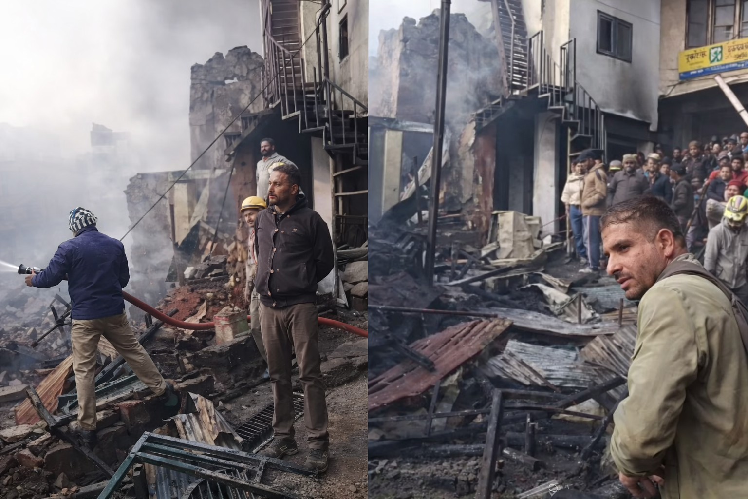 A massive fire broke out in a crowded market area of Himachal Pradesh, turning a normal business day into a devastating tragedy. Within minutes, flames engulfed multiple shops, sending thick plumes of smoke into the sky. Panic spread rapidly as shopkeepers and visitors rushed to escape, while some were feared trapped inside. Eyewitnesses reported hearing explosions, likely caused by gas cylinders stored in shops. The intensity of the fire made rescue efforts extremely challenging in the initial hours.