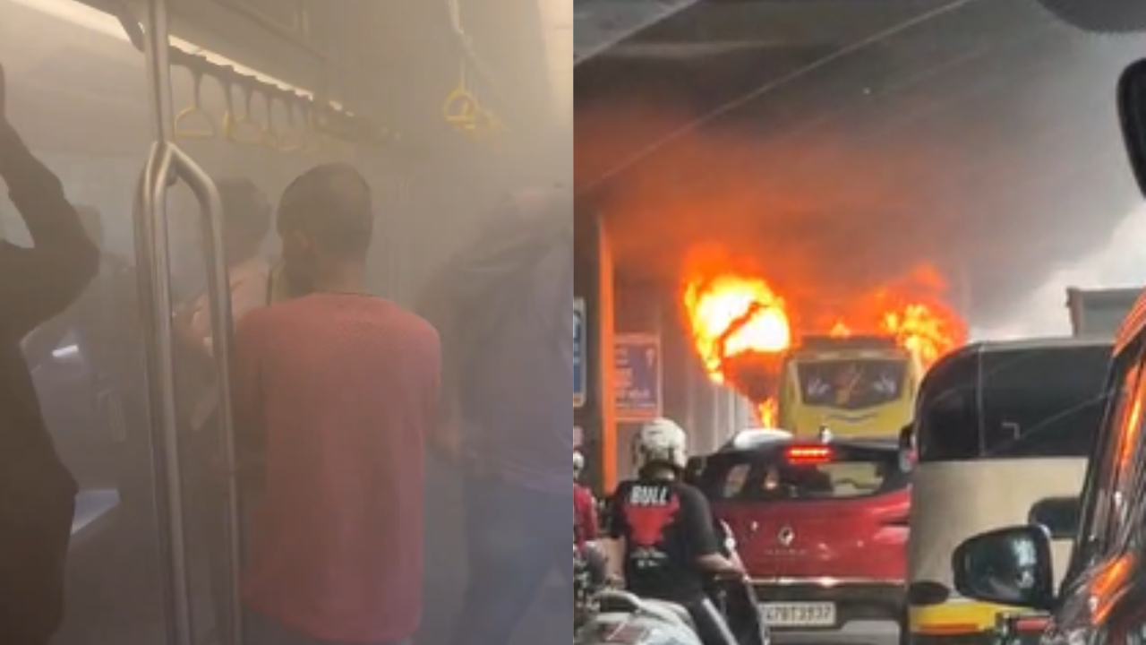 A video showing passengers coughing, suffocating, and covering their faces as thick smoke filled a Mumbai Metro coach has gone viral on social media. The incident occurred on Tuesday at Devipada Metro Station in the Borivali area. According to reports, a private bus caught fire on the Western Express Highway, right below the metro station. As the metro halted at Devipada station, the smoke from the blaze rose and entered the coach, causing panic among passengers and making it difficult to breathe. The fire brigade rushed to the spot and launched efforts to douse the flames. However, no injuries have been reported so far. However, as the bus parked beneath the metro station caught fire, thick black smoke billowed upward. At that moment, a metro train halted at the station, and as its doors opened, the smoke entered the coaches. Moreover, a 50-second video shared on social media platform X (formerly Twitter) by user Yogesh Namjoshi shows a metro coach engulfed in thick smoke, with passengers coughing and struggling to breathe. Taking to X, Mumbai Metro said,”We regret the inconvenience caused to our valued passengers.” “Due to the station’s open design, smoke briefly reached the platform and entered one coach when doors opened. The situation was promptly managed at the next station. There was no fire or hazard inside the train. Metro services continued safely and uninterrupted. We thank commuters for their patience and understanding,” it added. Read more